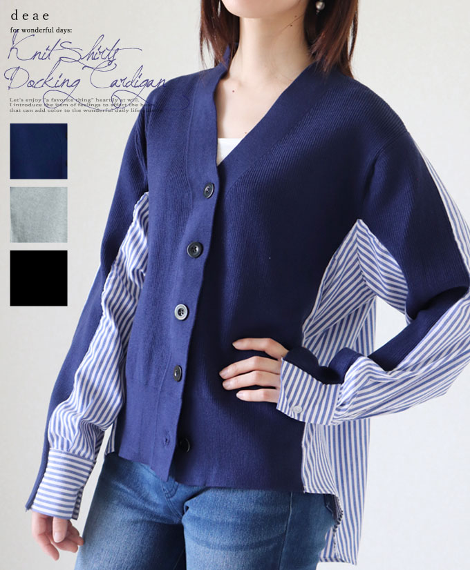 【再入荷11/8】羽織り カーディガン トップス ニット ストライプ シャツ 爽やか 清楚 綺麗め ・・・