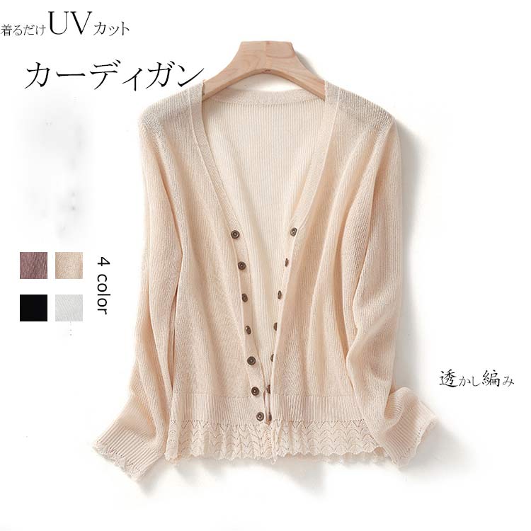 カーディガン UVカット 日焼け防止 カットソー ニットカーディガン ロングスリーブ サマーニット ・・・