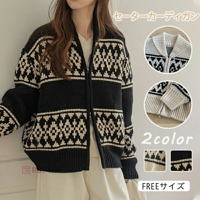 カーディガン レディース 秋冬 厚手 ニット ノルディック柄 ファスナー レディースニットカーディガ・・・