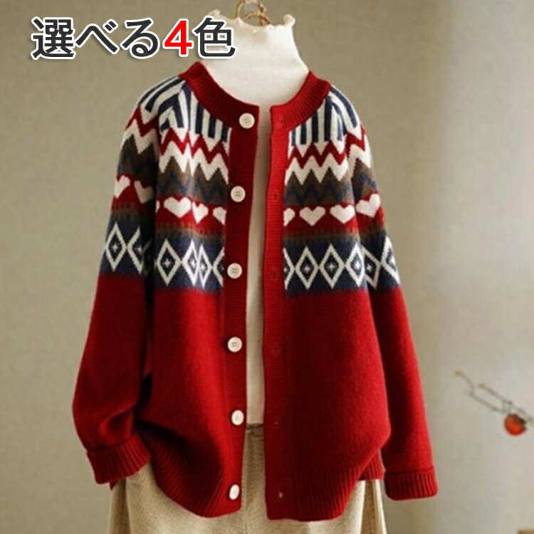 カーディガン カーデ トップス ニット 長袖 ノルディック柄 レディース ニット ゆったり 大きいサ・・・