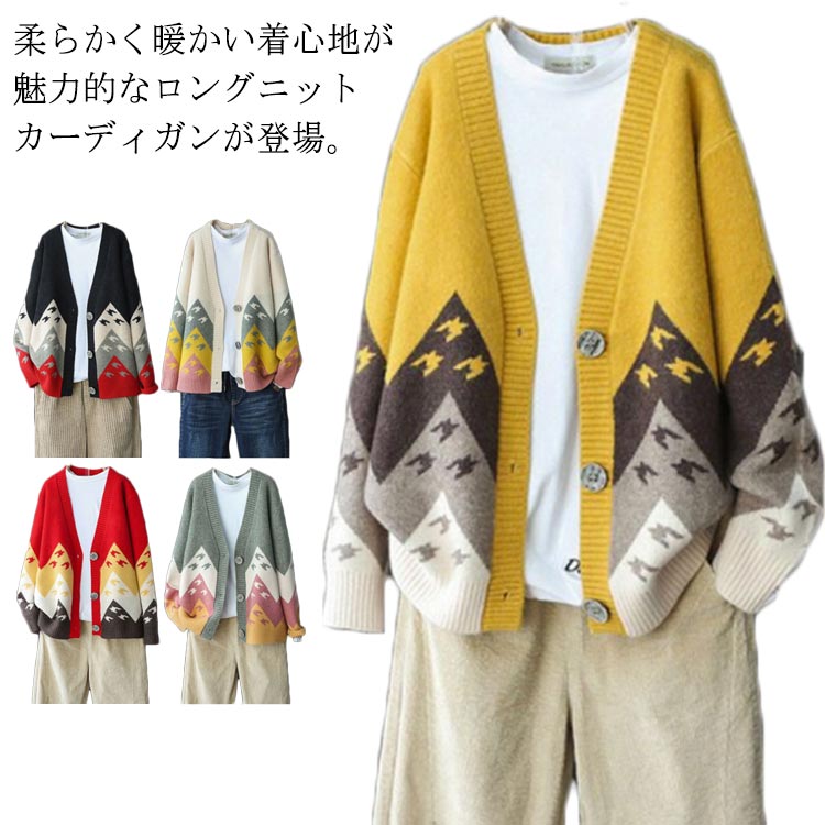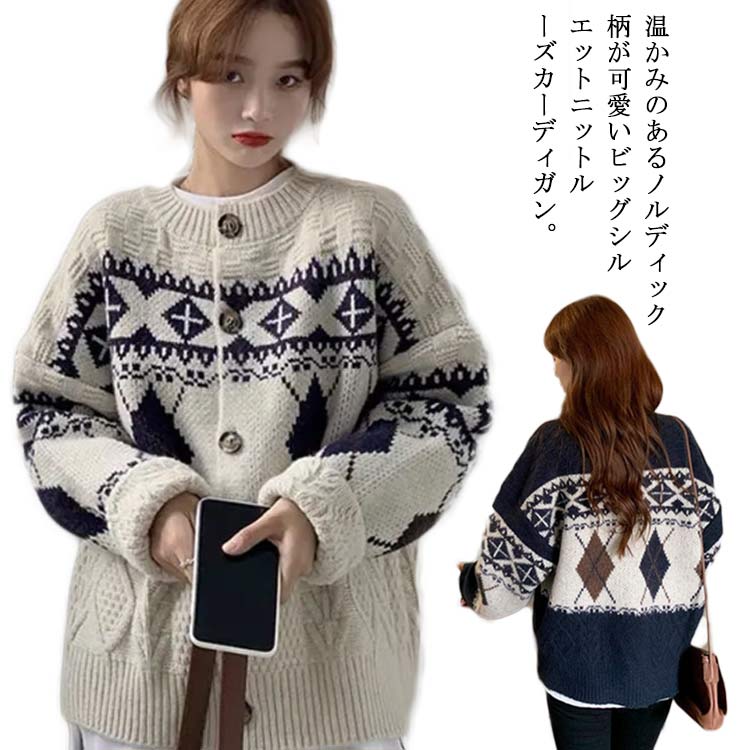 レディース ニット 長袖 厚手 ノルディック柄 春 アーガイル柄 ニット 羽織り カーディガン 冬 ・・・