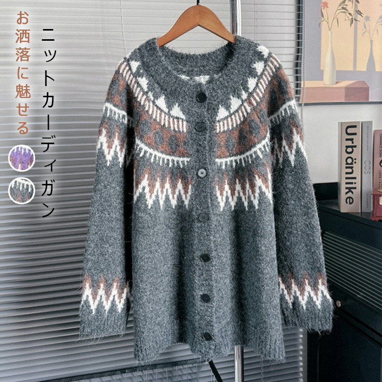 ニット カーディガン レディース 秋冬 ノルディック柄 ニットカーディガン セーター カーデ トップ・・・