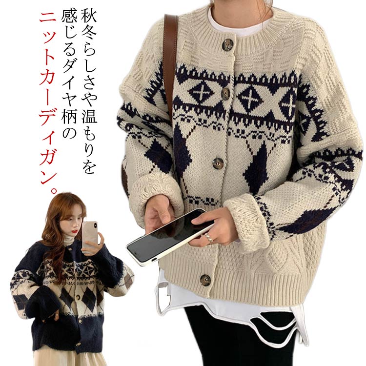 トップス プルオーバー 長袖 カーディガン ニット フェアアイル柄 ノルディック柄 ダイヤ柄 レディ・・・