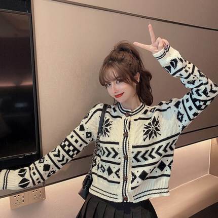 ノルディック柄カーディガン トップス カーディガン 袖あり 長袖 ラウンドネック 前開き かわいい ・・・