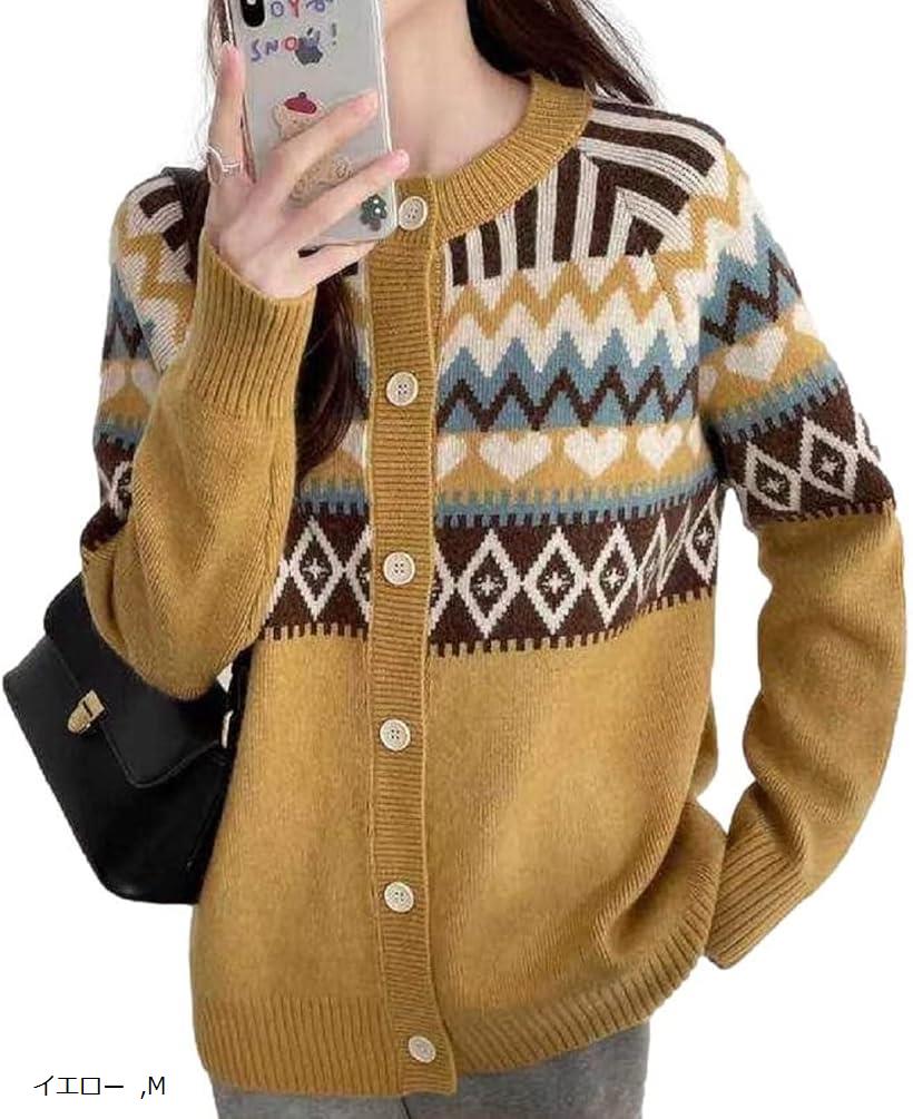 ノルディック柄 カーディガン ニット セーター アーガイル柄 レディース ケーブル編み トップス ゆ・・・