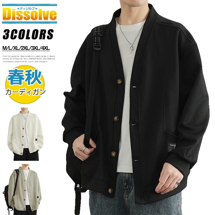 カーディガン メンズ 長袖 Vネック ジャケット はおり 長袖カーディガン 無地 ライトアウター ビ・・・