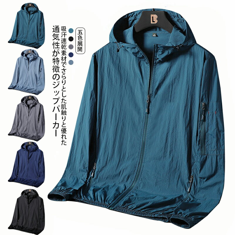 ジップパーカー フード 薄手 ストレッチ 接触冷感 吸汗速乾 メンズ UVカット スポーツ ダンス ・・・