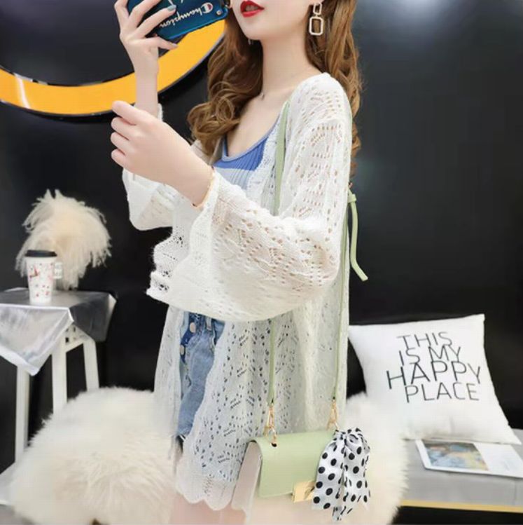 カーディガン レディース レース 透かし編みカーディガン サマーニット シアー 長袖 透け感 鍵編み・・・