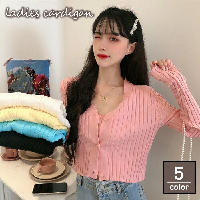 送料無料 カーディガン ニット ショート丈 レディース 女性 トップス 長袖 前開き 前ボタン リブ・・・