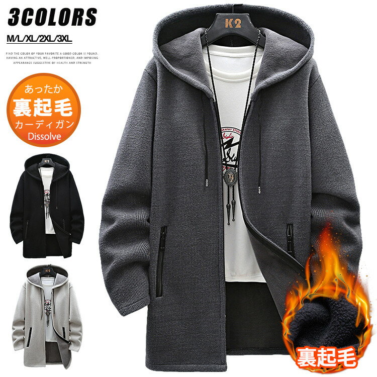 \3700円/カーディガン 裏起毛 メンズ あったか 裏フリース ニットカーディガン 無地 細身 ミ・・・
