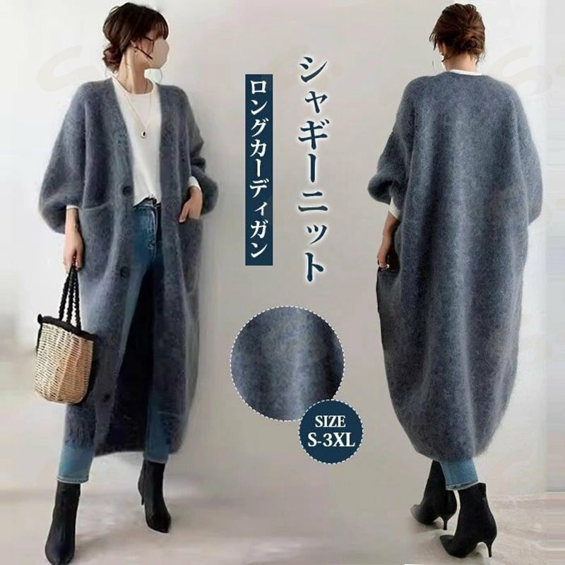 ロングニットコート カーディガン レディース 秋 秋冬 シャギーニット 大きいサイズ フード付き ニ・・・