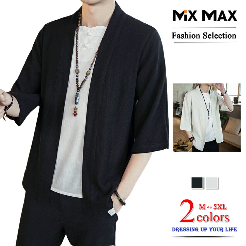 シャツ カジュアルシャツ メンズ 綿麻 五分袖 七分袖 開襟シャツ カーディガン 部屋着 おしゃれ ・・・
