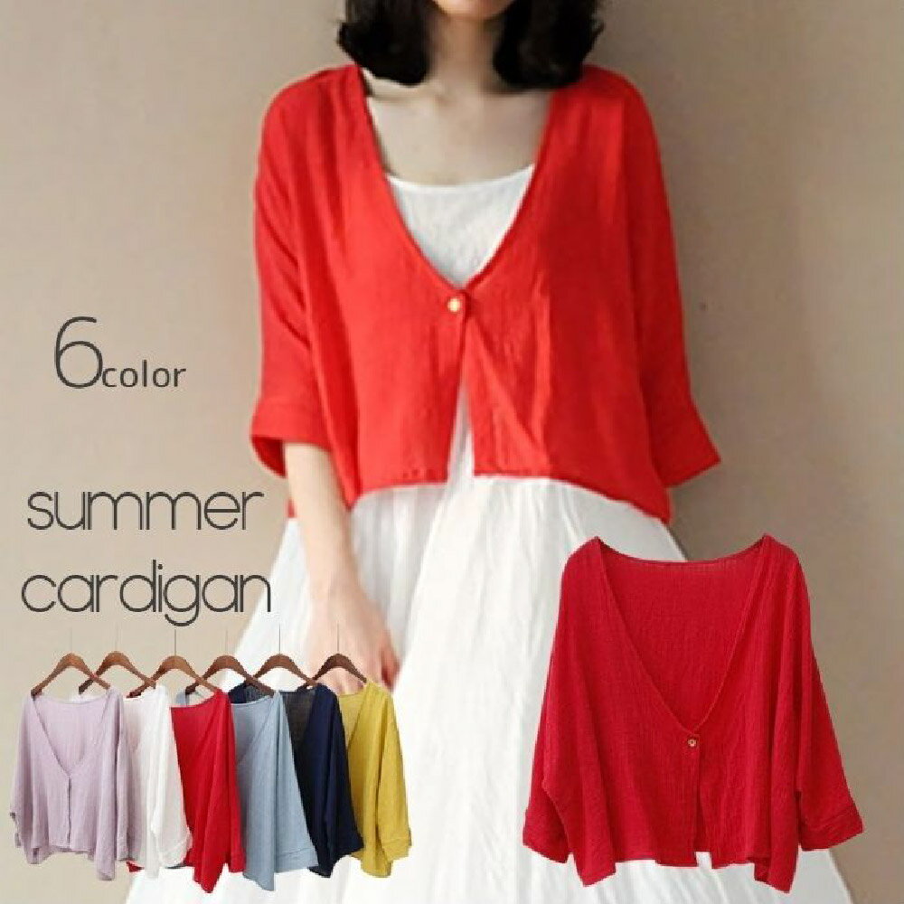 送料無料 サマーカーディガン ボレロ レディース トップス 七分袖 7分袖 Vネック 羽織り ショー・・・