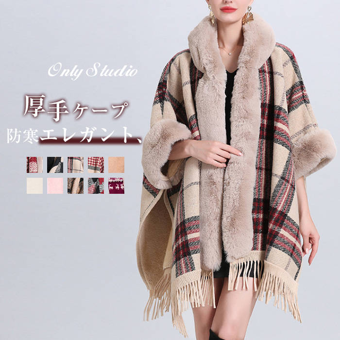 裏ボア ポンチョ コート レディース ニット 厚手 雪 鹿 七分袖 クリスマスケープ フリンジ デザ・・・