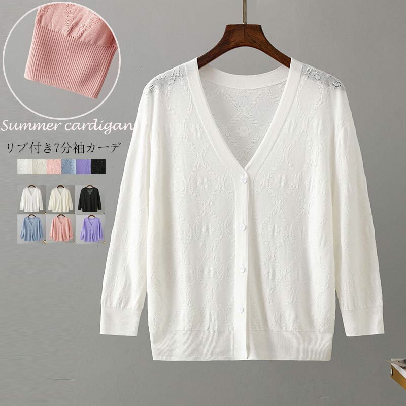 カーディガン 薄手 7分袖 夏用カーディガン レディース 羽織もの 半袖 トップス 春 夏 サマーニ・・・