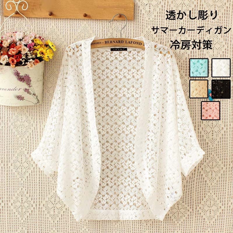 サマーカーディガン レース カーディガン レディース アウター 透かし彫り UVカット 7分袖 ドル・・・