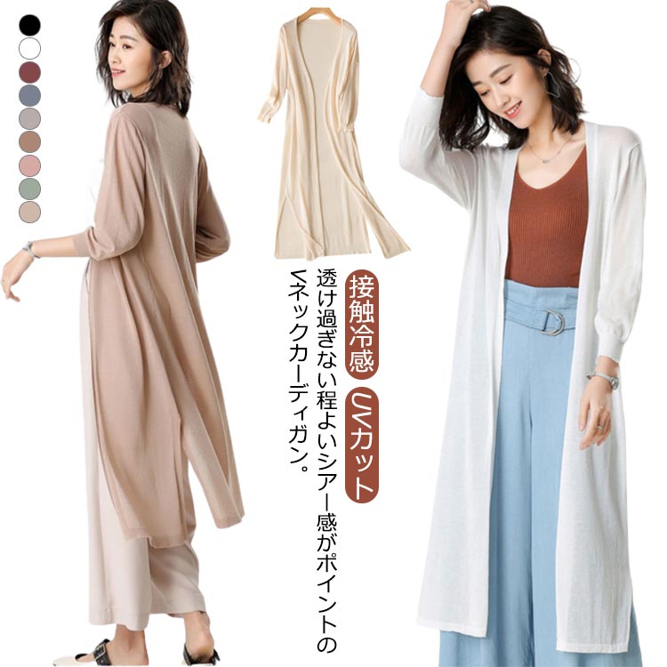 カーディガン UVカット ロング 7分袖 ニット ロングカーディガン レディース サマーニット 40・・・