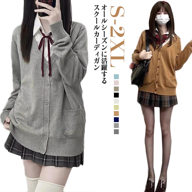 スクールカーディガン Vネック 定番 学生服 学生 高校生 ニットカーディガン スクールセーター 防・・・