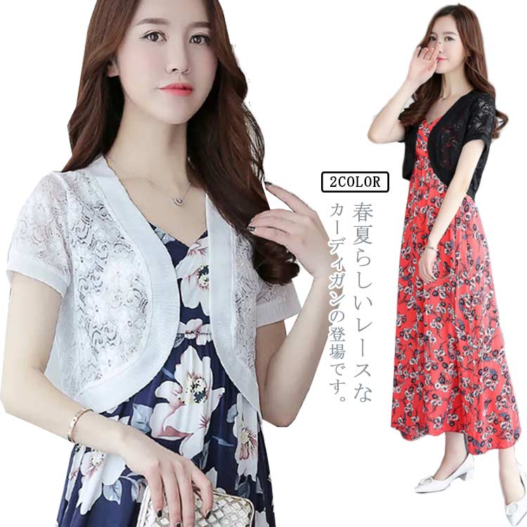 サマーカーディガン ショート丈 カーディガン レース カーディガン ボレロ 半袖 羽織り 花柄レース・・・