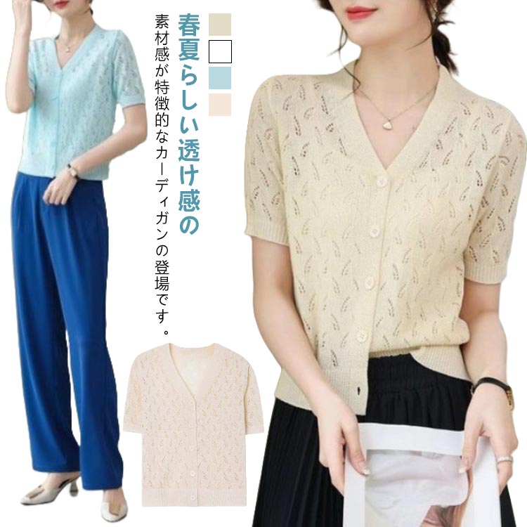 カーディガン レディース 半袖 夏 夏用 きれいめ 前開き カーデガン カーデ トップス ゆったり ・・・