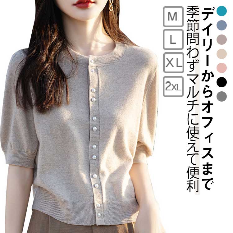 ニット レディース 丸首 春 半袖カーディガン ニットカーディガン 5分袖 トップス 半袖 通勤 秋・・・