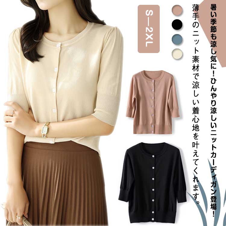 ひんやり カーディガン レディース 送料無料 カーディガン サマーニット 五分袖 羽織り サマーカー・・・