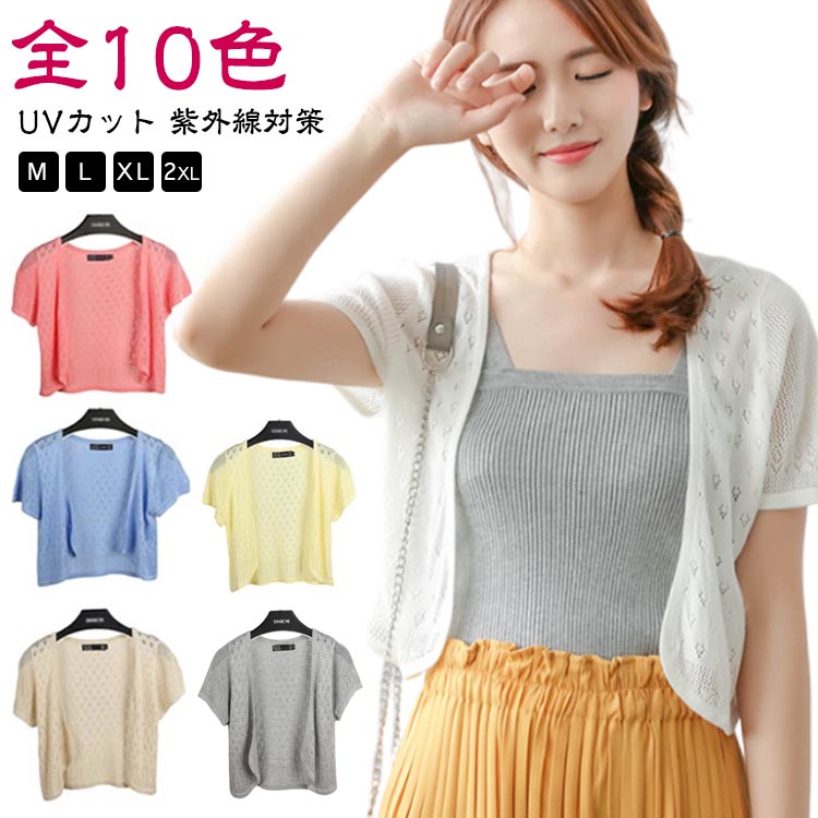 全10色 透かし コンパクト 半袖 カーディガン レディース サマーニット ボレロ サマーカーディガ・・・