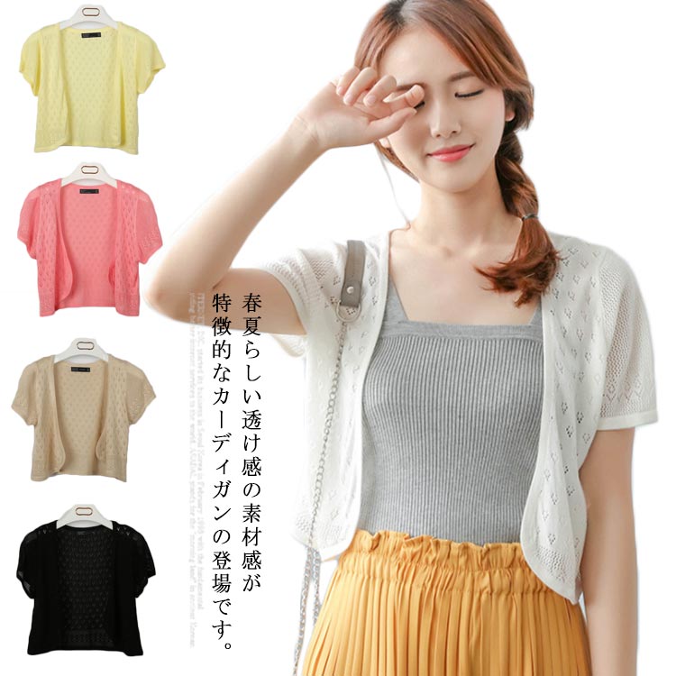 カーディガン レディース 透け感 半袖 サマーカーディガン ショート丈 透かし ニットカーディガン ・・・