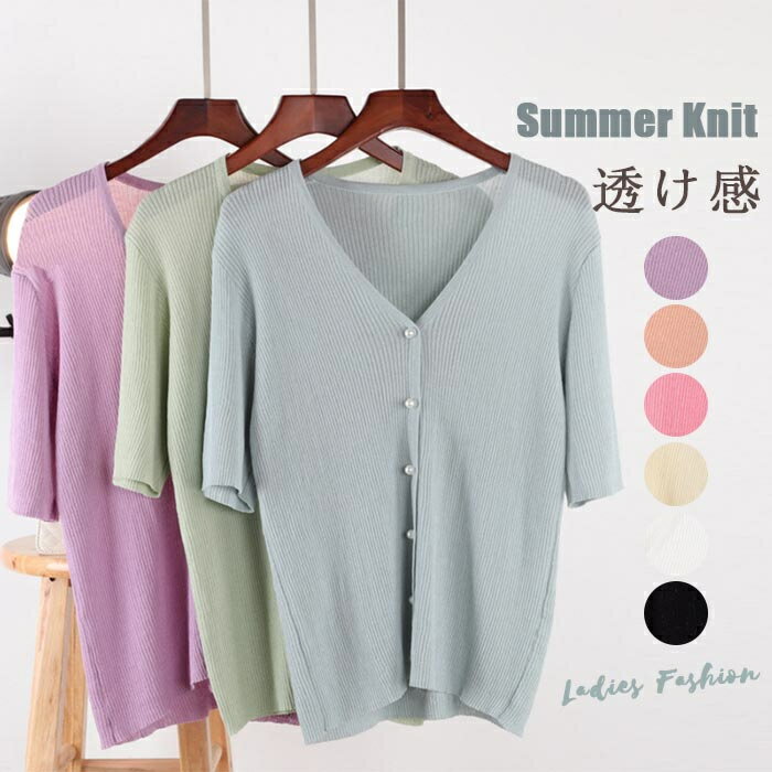 サマーニット 半袖 カーディガン レディース vネック アウター 薄手 春夏 夏用カーディガン 羽織・・・