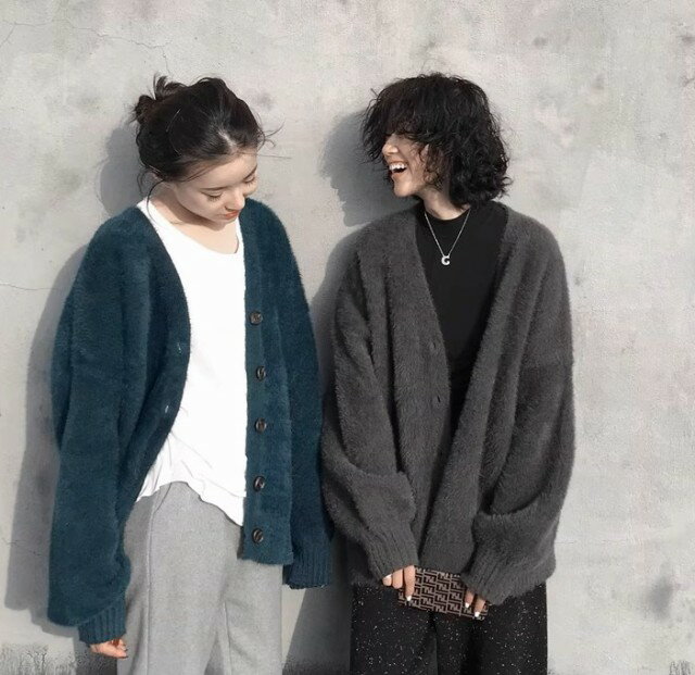 シャギーニット カーディガン Vネック レディース トップス 秋冬 ショート丈 ミドル丈 長袖 大き・・・