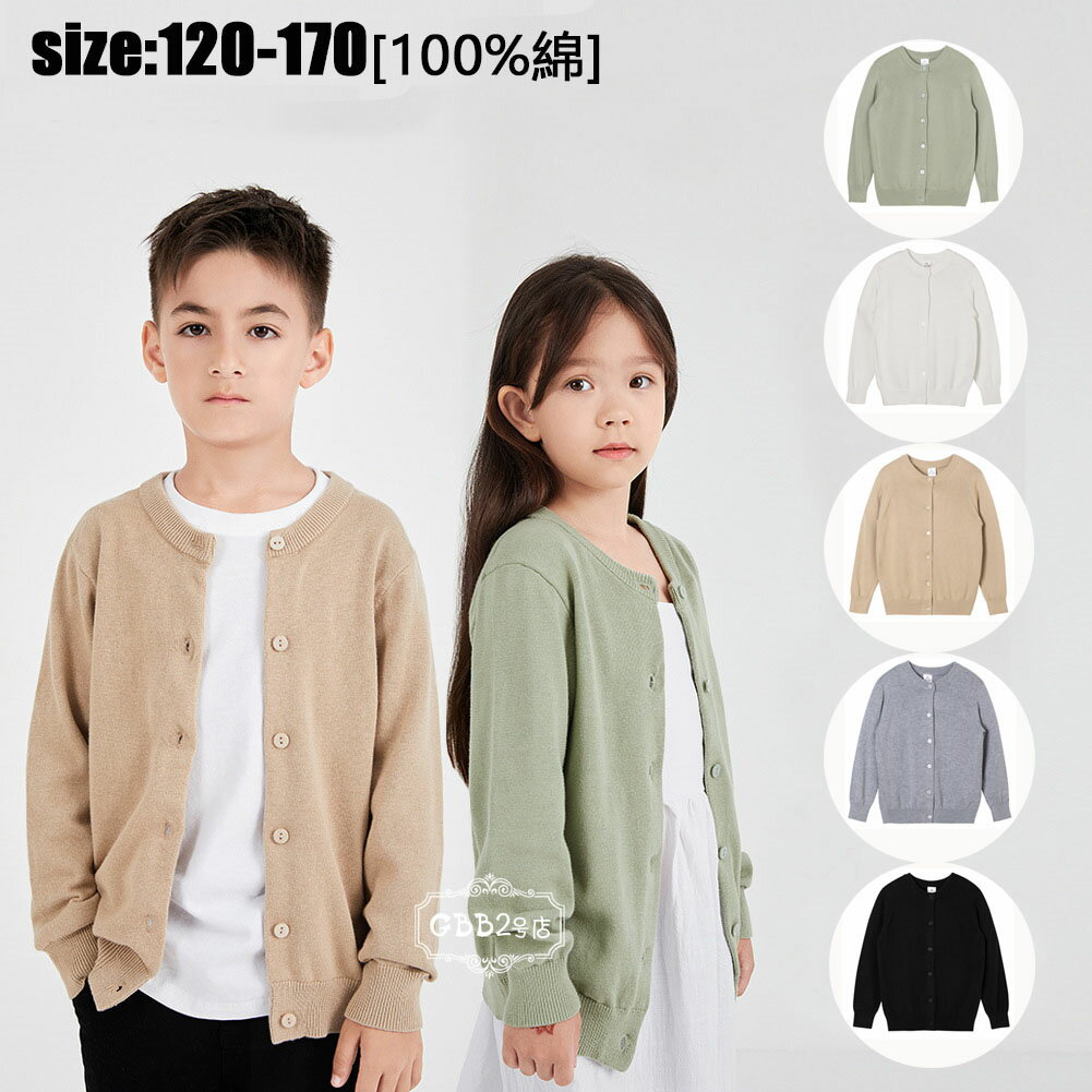 キッズ ニット カーディガン 100%綿 無地 子供服 アウター 長袖 春秋 女の子 男の子 入園 ・・・