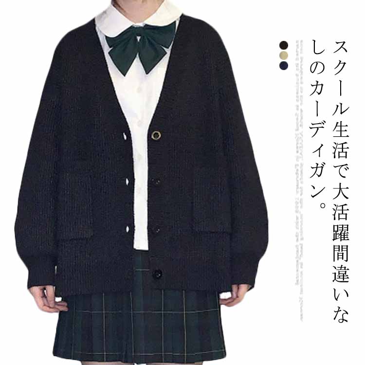 (送料無料)スクールカーディガン 女子 制服 ゆったり Vネック 前開き ニットカーディガン リブ編・・・