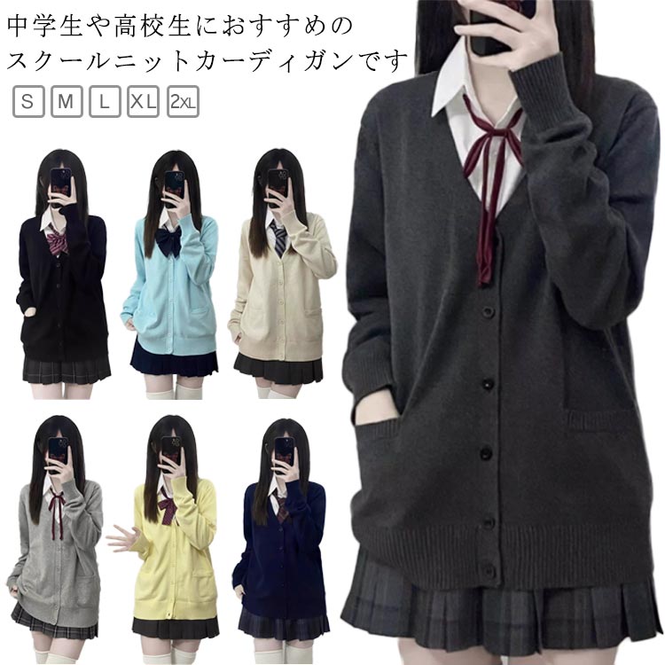 送料無料 スクールカーディガン 学生 女子 制服 長袖 スクール ニット セーター ニットカーディガ・・・