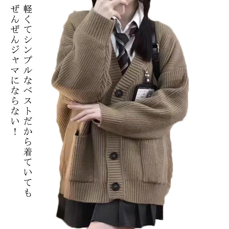 カーディガン 女子 スクールカーディガン 制服 ゆったり Vネック ニット 秋冬 春 無地 スクール・・・