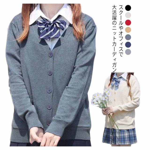 無地 スクールカーディガン 女子 スクール 入学式 セーター ニット 春夏 長袖 高校生 スクールカ・・・