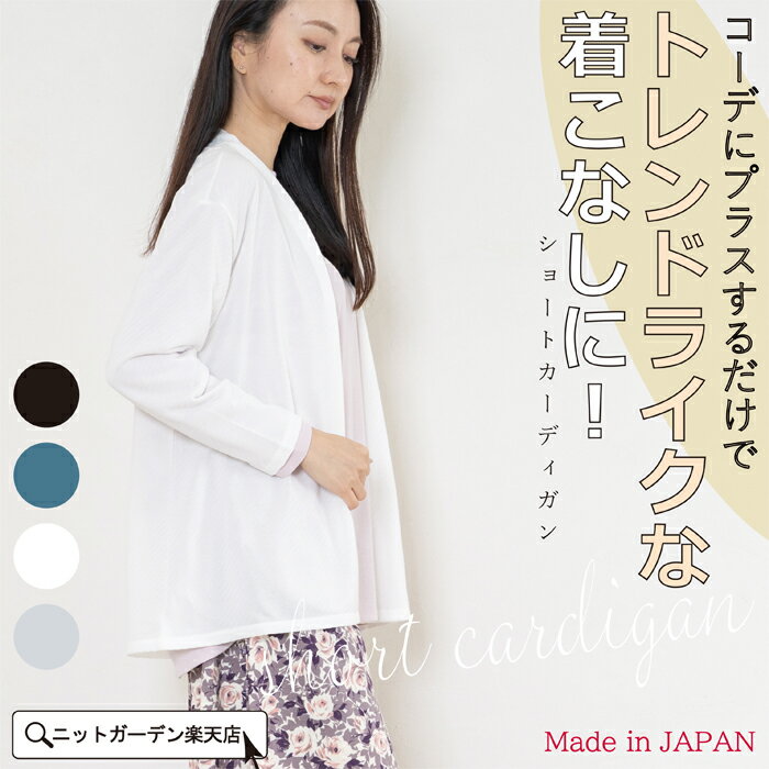 ショートカーディガン レディース ボタンレス 日本製 羽織り トップス ブラック 黒色 ターコイズ ・・・