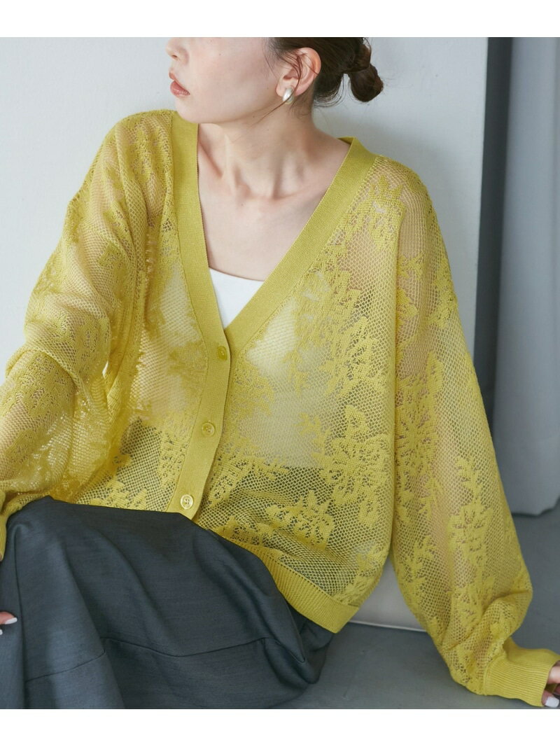 透かし編み花柄Vネックカーディガン ROPE' PICNIC ロペピクニック トップス カーディガン・・・