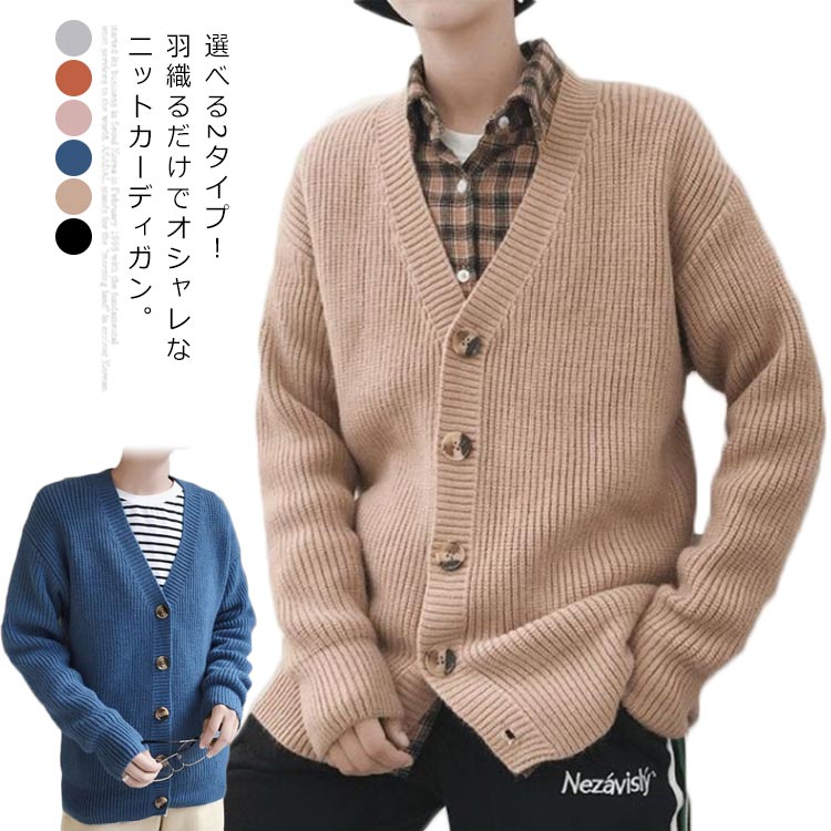 選べる2タイプ!カーディガン メンズ ニットカーディガン ニット アウター トップス 長袖 Vネック・・・