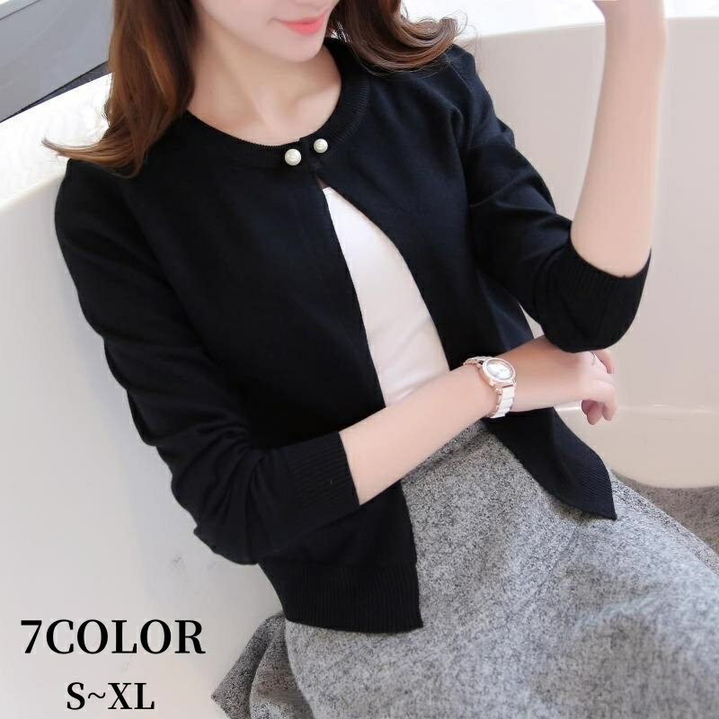 送料無料 カーディガン レディース ニット 長袖 前開き クルーネック 無地 シンプル ボタンレス ・・・