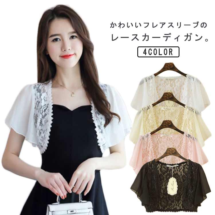 夏用 レディース 半袖 サマーカーディガン 羽織り 黒 フレアスリーブ カーディガン ボレロ レース・・・