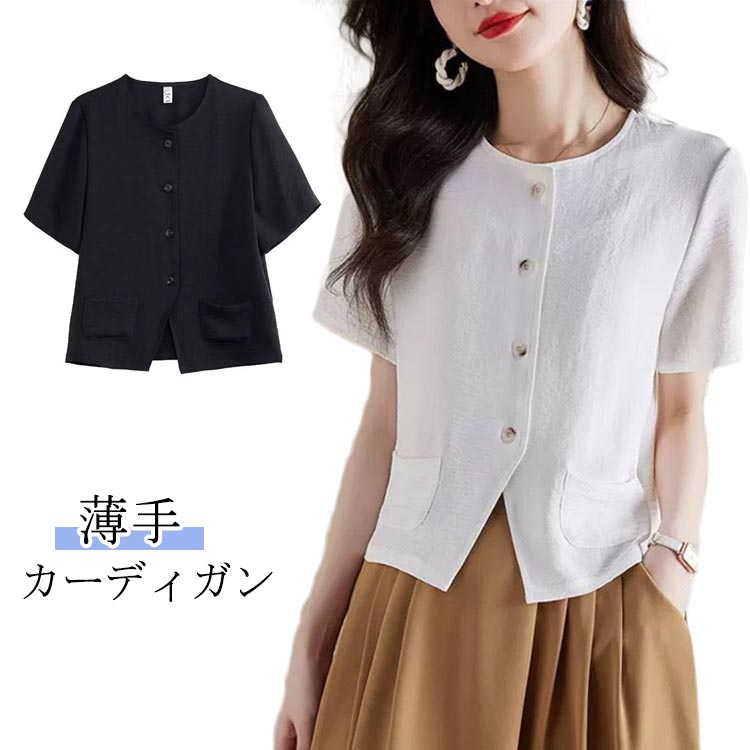 綿麻風 半袖 カーディガン 夏 レディース 半袖ジャケット 薄手 サマー カーディガン 羽織り ショ・・・