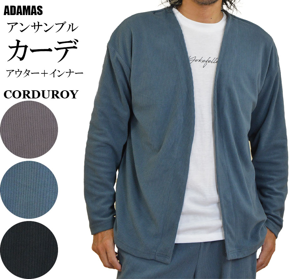 カーディガン メンズ インナー付 アンサンブル コーデュロイ コール天 カーデガン ボタンレス ボタ・・・