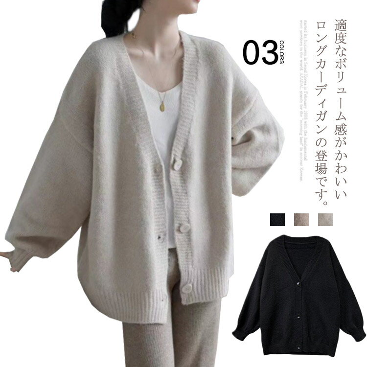 カーディガン レディース ニットカーディガン 羽織り ゆったり 体型カバー 長袖 ドロップショルダー・・・
