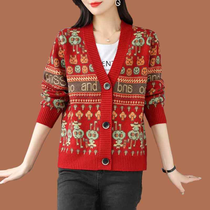 ニットカーディガン レディース 欧米風 ストリート 厚手 Vネック 長袖 ロング丈 ボーダー柄 ウー・・・