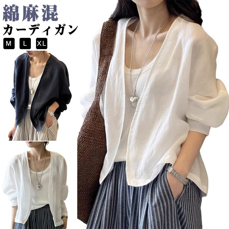 カーディガン リネン レディース ボレロ ショート UVカーデ カーデ 紫外線対策 冷房対策 前開き・・・