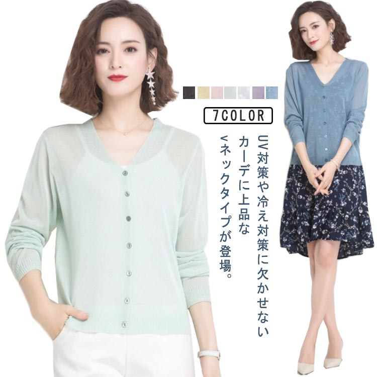 春用 vネックカーディガン UV対策 レディース 薄手 カーディガン UV カーデ トップス Uネッ・・・