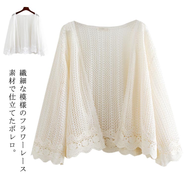 ニットカーディガン サマーカーディガン フラワーレース 夏 カーディガン 紫外線対策 日焼け防止 羽・・・