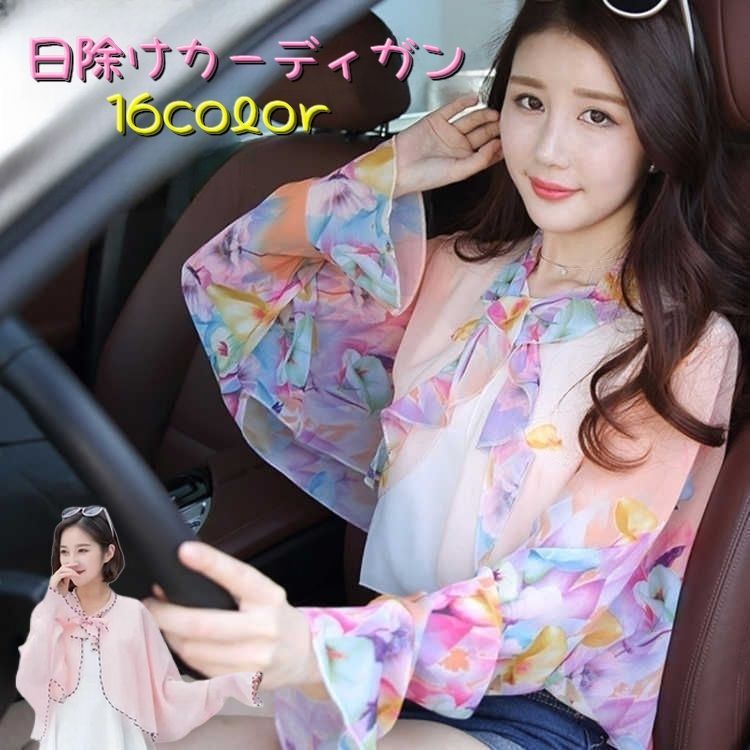 送料無料 日除けカーディガン 日除けショール レディース カーディガン 長袖 リボン 薄手 ポンチョ・・・