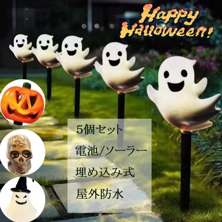 \スーパーセール/【5個セット】ハロウィン 飾り カボチャ 屋外 ソーラーライト 可愛い 幽霊 ガー・・・