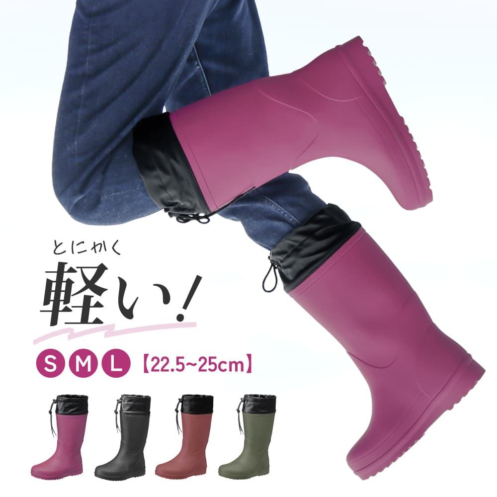 軽量 フード付き 長靴 レインブーツ おしゃれ レディース 軽い 歩きやすい 完全防水 マゼンタ/ブ・・・